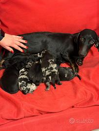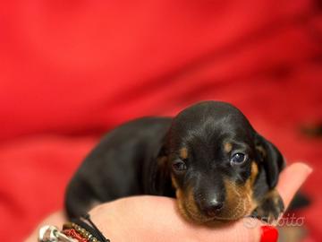 Cuccioli di bassotti tedeschi standard nati il 23 ottobre .verranno consegnati con vaccino sverminio e visita medica che attesta il buono stato di salute dei cuccioli.1000 euro non trattabili. Filippo 3447146095