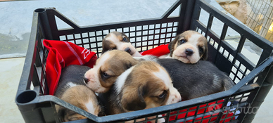 Disponibili cuccioli di Beagle originali, figli di otto cani da caccia e con pedigree. I cuccioli verranno consegnati a 60 giorni sverminati e con vaccino fatto, possibilità di pedigree. Si accettano prenotazioni previo acconto, disponibili una femmina e 4 maschi.