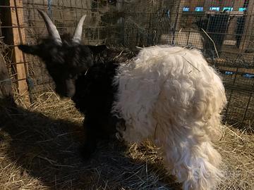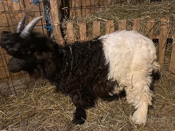 Vendo capretto nato a marzo di razza vallesana. Molto buono con le persone e gli altri animali. Esente caev. Allevamento da latte Visibili entrambi in genitori di mia proprietà