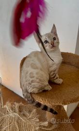 Allevamento amatoriale con affisso, dispone di una bellissima cucciola di bengala Snow con occhi azzurri.