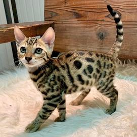 Disponibili alla prenotazione bellissimi bengala silver, brown e snow con pedigree ENFI. Hanno vaccinazione e relativo richiamo, doppia sverminazione e test dei genitori di nostra proprietà esenti da patologie genetiche.