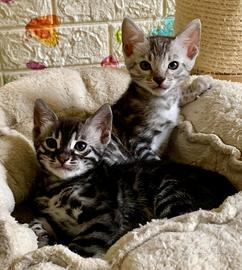 Cuccioli di bengala snow, silver e brown disponibili ai tre mesi di età ma già prenotabili e visibili presso allevamento amatoriale LILLI FOREST (foto 5 e 6 dei papà Vom Kranichsberg Bellerofonte e Lautaro Lilly Forest). I cuccioli vengono ceduti con contratto da compagnia, pedigree ENFI, libretto sanitario comprovante vaccinazione trivalente, relativo richiamo e sverminazione, kit cucciolo. Genitori di proprietà testati geneticamente. Tutti i nostri cuccioli nascono e crescono come membri della famiglia in modo da sviluppare un carattere socievole e particolarmente affettuoso. INFO: 347/8881738 - Ulteriori foto e video sulla pagina Facebook: LILLI FOREST BENGALA - E' particolarmente gradita una prima presentazione. No perditempo, grazie. Memo IMPORTANTE per gli interessati: per la legge italiana un animale è di RAZZA solo se in possesso del pedigree, rilasciato dalle associazioni ufficialmente riconosciute dal ministero competente...meditate gente...! NON SONO IN REGALO.
