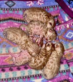 Cuccioli di bengala snow disponibili ai tre mesi di età ma già prenotabili e visibili presso allevamento amatoriale LILLI FOREST (foto 5 di papà Vom Kranichsberg Bellerofonte). I cuccioli vengono ceduti con contratto da compagnia, pedigree ENFI, libretto sanitario comprovante vaccinazione trivalente, relativo richiamo e sverminazione, kit cucciolo. Genitori di proprietà testati geneticamente. Tutti i nostri cuccioli nascono e crescono in casa come membri della famiglia in modo da sviluppare un carattere socievole e particolarmente affettuoso. INFO: 347/8881738 - Ulteriori foto e video sulla pagina Facebook: LILLI FOREST BENGALA - E' particolarmente gradita una prima presentazione. No perditempo, grazie. Memo IMPORTANTE per gli interessati: per la legge italiana un animale è di RAZZA solo se in possesso del pedigree, rilasciato dalle associazioni ufficialmente riconosciute dal ministero competente...meditate gente...! NON SONO IN REGALO.