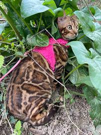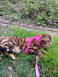Cucciola di bengala femmina di 7 mesi brown spotted, con pedigree e microchip, libretto sanitario con vaccinazioni e sverminazioni. Genitori testati geneticamente per prab e pk def. La cucciola ha un carattere solare e molto affettuoso, nata e cresciuta in casa a contatto anche con i cani. Viene ceduta da compagnia. Per ogni altra informazione si prega di TELEFONARE per una chiaccherata conoscitiva.