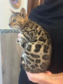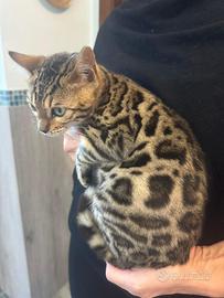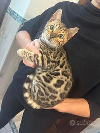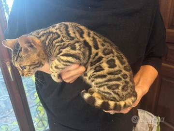 Gatto bengala splendido maschietto di 3 mesi di genealogia top internazionale disponibile. E' allegro, giocoso e fiducioso. Riproduttori testati per malattie genetiche, sarà consegnato con vaccini, sverminazioni, microchip e certificato di buona salute. Visibile previo appuntamento solo a seriamente intenzionati Euro 650