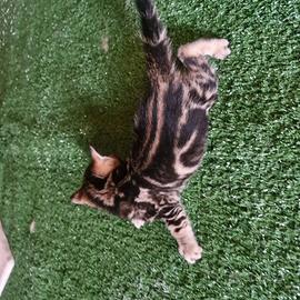 Disponibili per prenotazione 3 bellissimi cuccioli di bengala marble, molto coccoloni e affettuosi, saranno ceduti svezzati e abituati alla lettiera con libretto sanitario vaccinati è sverminati, entrambi i genitori sono visibili di mia proprietà, papà spotted mamma marble