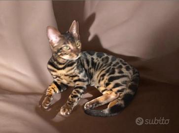 Disponibile Splendido gatto del Bengala dal mantello con rosette ben marcate e ottimo contrasto Cresciuto in ambiente familiare a stretto contatto con le persone, è un gatto equilibrato , affettuoso e molto intelligente Carattere socievole , curioso e giocherellone Snello e sano, abituato alla lettiera Ideale per famiglia o per chi cerca un gatto elegante affettuoso ed attivo - Si cerca famiglia seria e amante degli animali - Disponibile finché visibile Info: 3804515922