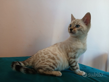 Bellissimo gattino maschio bengala colore snow lynx, genitori pedegree anfi, testati fiv-felv,si cedono con libretto sanitario, vaccinazione trivalente, trattamento antiparassitario.È educato all' uso della lettiera e del tiragraffi
