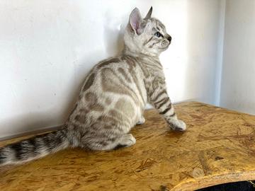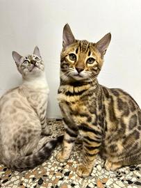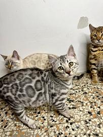 Disponibili bellissimi cuccioli bengala di 3 mesi. Mantelli Brown, Snow Lynx, Silver. Tutta la documentazione genetica, genealogica, sanitaria completa. Altissima genealogia. Prezzo impegnativo. No perditempo. Possibilità di consegna in tutta Italia