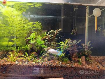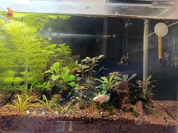 Vendo acquario già maturo compreso di tutto quello che vedete in foto con la preferenza di scegliere il betta a vostro piacimento tra cui betta halfmoon multicolor e pkhm multicolor