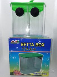 Vendo Bettiere in plastica , immergibili con ventose e coperchio. Ne ho 2 tipologie, la Bettiera mini a 2 vani con divisorio removibile, si attacca con le ventose in acquario, costo 6 euro
