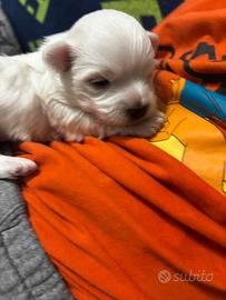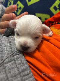 Bichon maltese nato il 26 nov 2025 , verrà ceduto : sverminato 2 volte ,microchipato ,il primo vaccino e libretto di buona salute (peso da adulto 3kg ,madre e padre visionabili,padre con pedigree,ottima razza da tenere in casa ,non perde pelo )