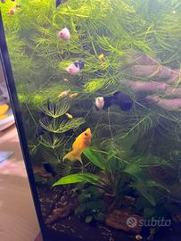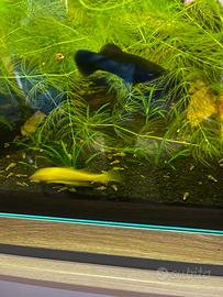 Devo smantellare un acquario causa trasloco quindi svendo i seguenti pesci - 1 ancistrus gold di 7 cm a 5€, -4 molly adulti e i relativi 11 avannotti a 10€, -5 platy giovani adulti nati nel mio acquario color bianco/nero a 5€, I pesci godo tutti ottima salute . Solo consegna a mano .