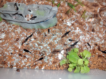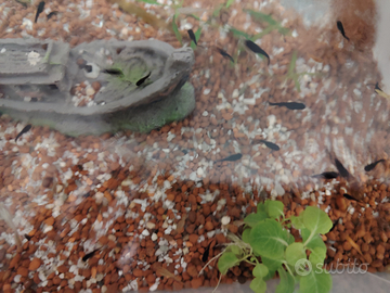 Vendo Scambio piccoli black molly nelle foto si vedono anche genitori . Cambio con piante per acquario, guppy, neocardine . Zona Roma nord possiamo incontrare anche nelle fermate della metro