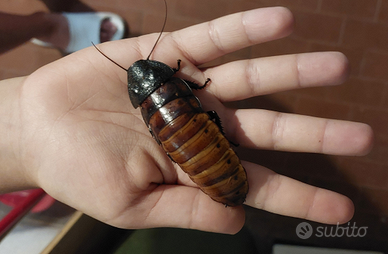 Blatte giganti del Madagascar, se si sentono in pericolo emettono un sibilio simile ad un soffio per questo motivo sono chiamate soffianti, facili da allevare e molto resistenti, non puzzano.