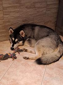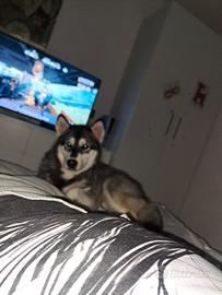 E' UN ALASKAN MALAMUTE DI RAZZA E DOTATO DI PEDIGREE.