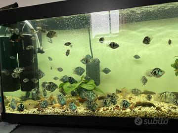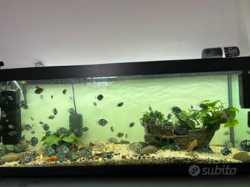 Vendo tutto, blue parrot pesce, acquario 120 litri, tutti le accessori, termostato. Zona Paese Treviso. Prezzo trattabile.'