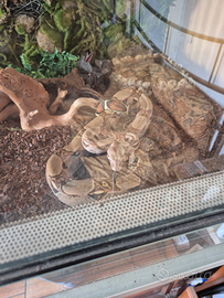Cedo boa constrictor normal hypo acquistato in fiera a Verona, con teca creas lampada ceramica , tappetino riscaldante, umidificatore, pinze per cibo e vari accessori ambientali( fondale, legni, vasche per acqua , substrati di ricambio etc etc) .