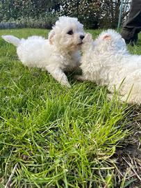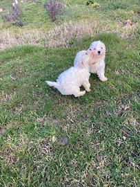 Disponibili cucciole femmine di bolognese di circa 2 mesi. Saranno consegnati con documenti e vaccinazioni e visitati dal veterinario. Per vedere altre foto andate pure alla pagina social Tre Basiliche. Cuccioli e genitori visibili. Senza impegno.