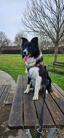 È amichevole con tutti i cani e umani. Con i latri animali non è agressivo, gli corre dietro e li prende sotto le zampe che è un tipico comportamento dei border collie. Lo do via per problemi famigliari e non avendo abbastanza tempo a dargli. È ottimo in guardia di casa di casa sia di notte che giorno. Ama giocare, e cono sce tanti commandi, in inglese.