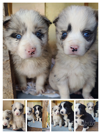 Buongiorno, disponibili cuccioli di Border Collie maschietti e femminucce, bianchi e neri o blue merle,occhietti azzurri. Avranno le orecchiette dritte , pelo lungo come i genitori. Carattere molto dolce, abituati a cani adulti, bambini, gatti. Vivono già all'estero, con mamma e papà nell'ultima foto.Saranno adottabili dal 20/12. Verranno affidati con libretto sanitario ,vaccino, microchip, vermifugo, visita medica veterinaria kit primi giorni pappa giochi. Per info, foto appuntamento 3442741343.