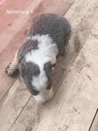 Disponibili ancora , 5 cuccioli di sette di cui 2 femmine grigie e bianche, 2 maschi grigi e bianchi e una femmina nera e bianca. Verranno ceduti sverminati , primo vaccino e pedigree Enci. I genitori sono visibili e sono lastrati. Papà Maverick ha eseguito i test genetici con risultato " Clear " , mamma Athena non ha e test genetici ma è esente per parentela.