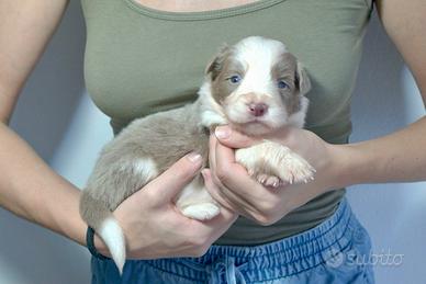 Disponibile cucciolo maschio di border collie di colore lilac nato il giorno 11/08, verrà ceduto dopo i 60 giorni con pedigree, microchip, vaccino, sverminazione e puppy kit.