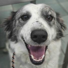 mix borde collie, taglia medio contenuta, appena 3 anni dal carattere meraviglioso, va d'accordo con tutti, socievole e molto giocherellona, taglia media.