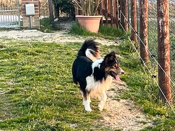 Border Collie maschio tricolore di tre anni con pedigree e certificato di iscrizione all'ENCI disponibile per accoppiamento.