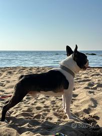 Sono un Boston Terrier Nano di 3 anni e 5 kg, bianco e nero, coda arricciata. Vivo in Sardegna, ad Arbus, mi piace andare in campagna e al mare.