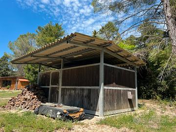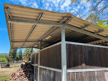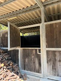 Vendesi box per cavalli di 6 metri x 3 metri, costruito in acciaio zincato e perline di abete da 4cm di spessore. Copertura integra in fibrocemento. Da accordarsi su trasporto e smontaggio