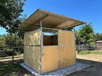box per cavalli di alta qualità, realizzati con struttura in ferro zincato e doghe in legno di prima scelta, progettati per garantire massimo comfort al cavallo e grande resistenza nel tempo.