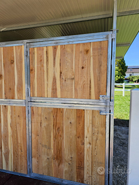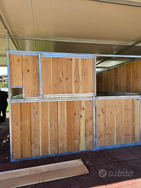 Costruzione e vendita box per cavalli di varie misure,a seconda delle esigenze del cliente, materiali zincati e tavole in larice. Box da interno e da esterno, sellerie e box lavaggio. Staccionate in legno trattato in autoclave per una massima durata nel tempo.