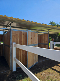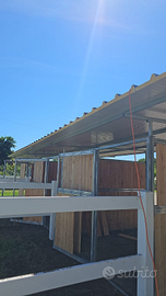 Costruiamo box per cavalli di varie misure ,materiali zincati e tavole in larice. Tetto coibentato oppure in lamiera, inoltre Costruiamo singole porte e capannine, fence ecc. Staccionate in legno trattato in autoclave
