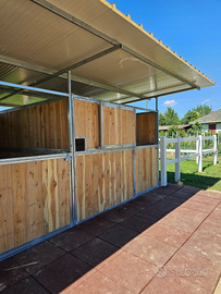 Costruzione e vendita di box per cavalli con materiali zincati e tavole in larice di varie misure.costruzione e vendita di fence,box lavaggio, sellerie e staccionate in legno trattato in autoclave