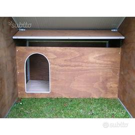 - cuccia interna in legno (da 125 x 65 x 85h, con ingresso "antimorso" da 27 x 47h), ispezionabile sollevando il tettino e completa di pedana rialzata da terra, estraibile e lavabile