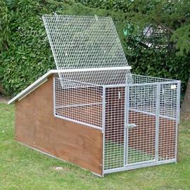 - copertura zona notte in pannello isolante, spess. 3,5 cm; zona giorno con tetto in rete apribile per facilitare l'ingresso e la pulizia