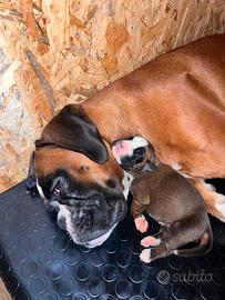 Cucciolata di alta selezione d'allevamento Ufficiale FCI ENCI Cuccioli di altissima genealogia con caratteristiche da esposizione con padre campione di esposizione nazionale vincitore di Classe lavoro al campionato di morfologia Boxer club italia, controlli ufficiali sanitari perfetti di entrambi i genitori in: -Displasia A, B -Spondilosi 0 -Cuore Ufficiale di entrambi i genitori Perfetto esente da qualsiasi cardiopatia congenita. I cuccioli verranno ceduti da 65 giorni in poi con: -Microchip e iscrizione anagrafe canina -Pedigree ufficiale ENCI -3 sverminazioni -2 Vaccinazioni (parvo e 1 dose eptavalente virbac) -Libretto sanitario -Certificato di Buona Salute -Kit Cucciolo Non esitate a contattarmi per le foto ufficiali dei genitori o i dati sanitari ufficiali consultabili anche ufficialmente sul sito ENCI o Boxer Club italia