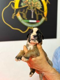 Cucciolata di allevamento Ufficiale FCI ENCI Altissima genealogia e selezione con caratteristiche da esposizione, con padre campione di esposizione nazionale e internazionale ,Campione riproduttore, Madre campionessa di expo nazionali e internazionali con controlli ufficiali sanitari perfetti di entrambi: -Displasia A -Spondilosi 0 -Cuore Ufficiale di entrambi i genitori Perfetto esente da qualsiasi cardiopatia congenita. Certificati visionabili in allevamento. I cuccioli verranno ceduti da 65 giorni in poi con: -Microchip e iscrizione anagrafe canina -Pedigree ufficiale ENCI -3 sverminazioni -2 Vaccinazioni (parvo e 1 dose eptavalente virbac) -Libretto sanitario -Certificato di Buona Salute -Kit Cucciolo Non esitate a contattarmi per le foto ufficiali dei genitori o i dati sanitari ufficiali consultabili anche ufficialmente sul sito ENCI o Boxer Club italia, presente su tutte le piattaforme digitali.