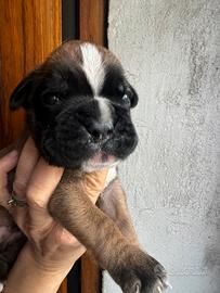Si cede splendido cucciolo boxer fulvo con macchie bianche. Nato in allevamento con affisso Enci, certificato Enci, da genitori con esami sanitari ufficiali perfetti, entrambi visibili in allevamento. Il cucciolo è pronto a metà maggio e sarà consegnato con pedegree Enci, microchip e anagrafe canina, vaccino, sverminazioni. Per ulteriori info contattare l'allevamento al numero 393 3227936