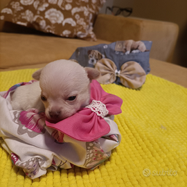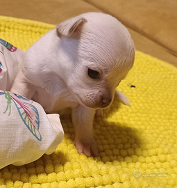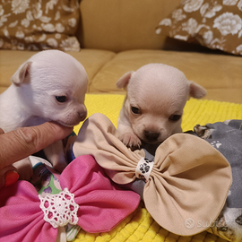 Cuccioli di chihuahua, pelo corto due bianchi e blu focati,...nati il 22 giugno genitori miei di proprietà aventi pedigree ENCI....saranno pronti dal 22 di agosto con microchip iscrizione all' anagrafe canina primo vaccino e avermi nazione......contattare solo se si è interessati....i cuccioli sono perfetti, , belli.....