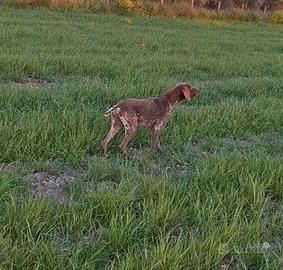 Cedo stupendo esemplare kurzhaar di 15 mesi di pura razza ottima linea di sangue.Il cane è stato avviato su quaglie, ferma, gira e riporta alla mano. Il cane poi per problemi di salute del proprietario è stato fermo per cui e da riprendere, non teme lo sparo ed è superubbidiente, ma senza difetti a caccia e di salute.No perditempo cedo a 150€ non trattabile gia è regalato no perditempo..