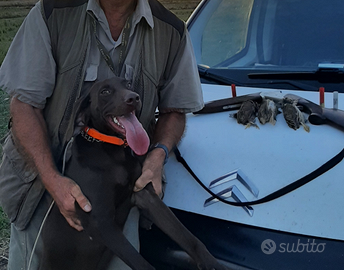 Cedo cucciolone bracco tedesco M di circa 11 mesi.il cane è stato ben addestrato, ha una buona cerca, ferma sicura e riporto! Già uscito a caccia di quaglie, pernici e beccacce con ottimi risultati vista la giovane età. Abituato a vivere in box in giardino senza latrare e disturbare i vicini in quanto docile e ubbidiente. Si cede solo x difficoltà a gestire M e F in box. In privato posso inviare filmati con azioni di caccia del cucciolone su selvaggina vera! Per info chiamare il 3389314801 solo se veramente interessati. Cucciolone già da pronta caccia.