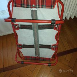 Classica Brandina per cani di media o piccola taglia, rosso scozzese con gambe pieghevoli, modello sempre tesa. Pratica e igienica mantiene il cane sollevato da terra. Quasi nuova. Tenuta molto bene. Misure : lunghezza 67 cm e profonda 44 cm