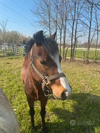 Bravissimo pony senza paure va sia attaccato che montato sano e abituato a vivere sia in box che in Paddock ha il tic d'appoggio