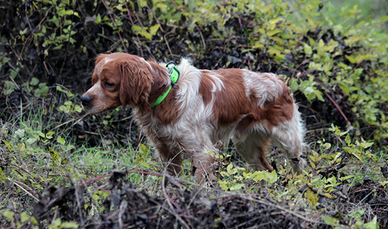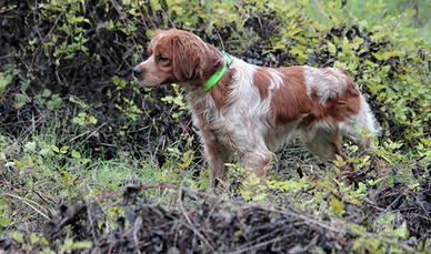 Breton maschio 14 mesi Bene iniziato su selvaggina naturale. Nei primi incontri nel bosco a beccacce dimostra buona venaticità, resistenza e vogli di incontrare. Ferma e riporta anche la piccola migratoria.