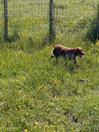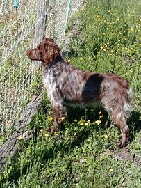 Disponibile Breton Èpagneul bianco fegato per monta . Il cane è un ottimo cacciatore.