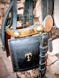 Briglia storica, con stemma nobiliare e iniziali in ottone, originale. Fattura di pregio, ben conservata.