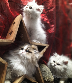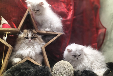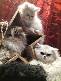 Sono un maschietto fold col manto allerchino e due femminuccie col manto silver argento chinchilla ,hanno 2 mesi e 1/2 con vaccino e antiparassitario già fatto con il loro libretto che certifica tutto. I piccoli sono svezzati e abituati alla lettiera e al tiragraffi .