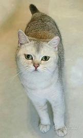 Disponibile una bellissima gatta British Shorthair Silver Shaded, dal mantello setoso color argento e dagli occhi verdi incantevoli, perfetta per chi desidera eleganza e tranquillità in casa.